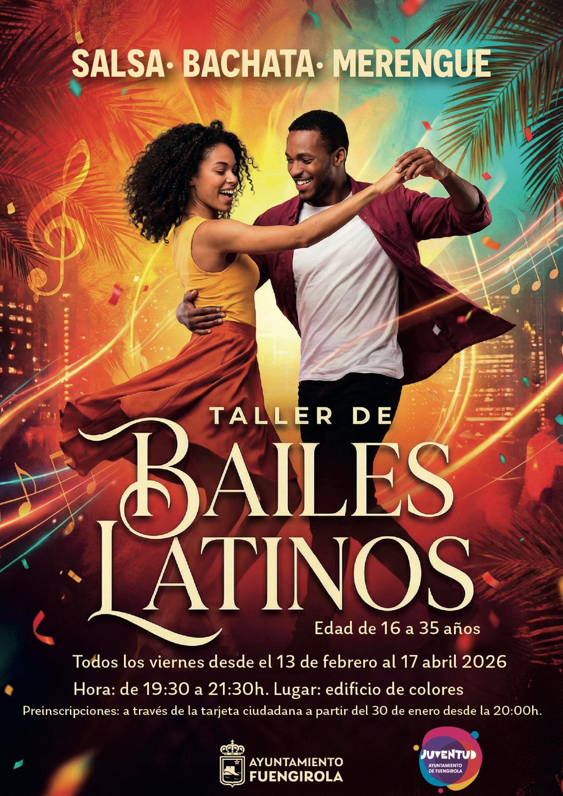 27/1/2026 -El Área de Juventud del Ayuntamiento de Fuengirola ha programado un taller de Bailes Latinos que se desarrollará en el edificio Colores de Los Boliches del 13 de fe3brero al 17 de abril. Así lo ha dado a conocer el concejal Isaac Vargas, quien ha explicado que la inscripción es gratuita y se abre este viernes 30 de enero, a partir de las 20:00 horas, a través de la Tarjeta Ciudadana.