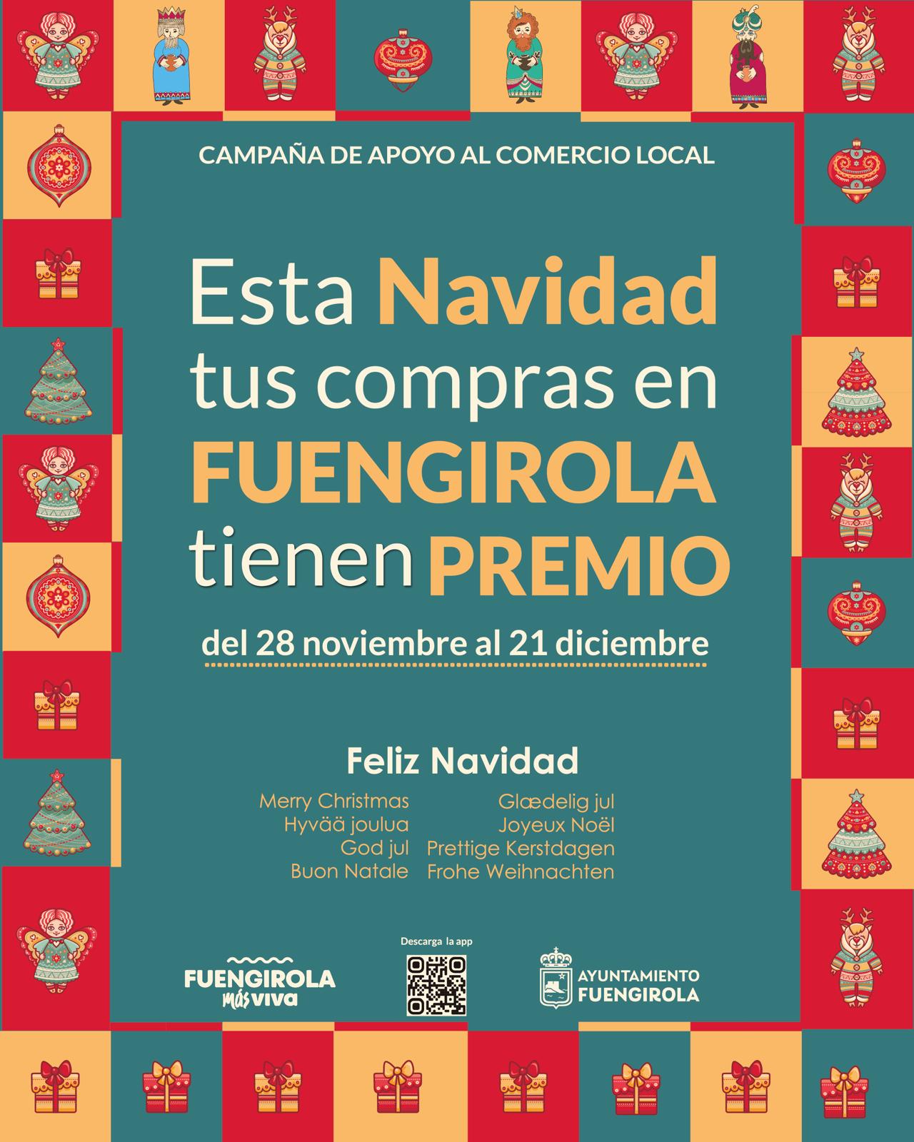 La campaña ‘Esta Navidad tus compras en Fuengirola tienen premio’, que estará activa del 28 de noviembre al 21 de diciembre, pretende potenciar el tejido económico local y el empleo. Para participar solo hay que realizar compras en cualquier comercio de la ciudad, subir los tickets a la app ‘Fuengirola Más Viva’ y, por cada 20 euros, se obtendrá una participación en el sorteo