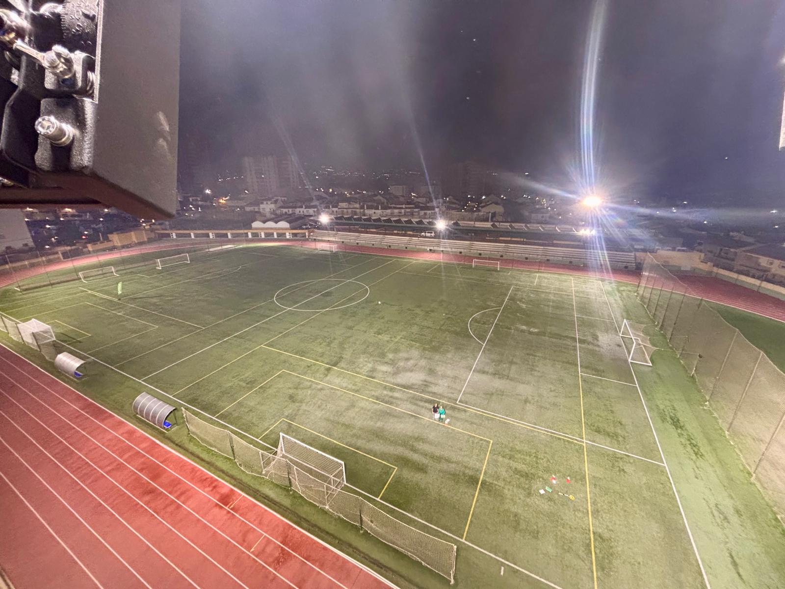 5/9/2025 – El Ayuntamiento de Fuengirola ha renovado con iluminación led el campo de fútbol ‘Jesús Gámez’, así como la pista de atletismo que lo circunda en el Complejo Deportivo Elola. Así lo ha anunciado esta mañana el concejal de Deportes, Julio Rodríguez, quien ha explicado que la instalación de las nuevas luminarias ya ha finalizado y ahora se están realizando trabajos de orientación de los proyectores, para garantizar que la luz cubra todas las zonas del campo de forma homogénea.