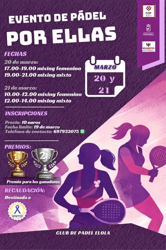 Se disputará en las categorías femenina y mixta y está incluido en la programación de actividades diseñada con motivo del Día Internacional de la Mujer ‘Fuengirola por ellas’. Las inscripciones tienen un coste de 10 euros por participante y podrán realizarse hasta el 19 de marzo a través del teléfono 697 923 075