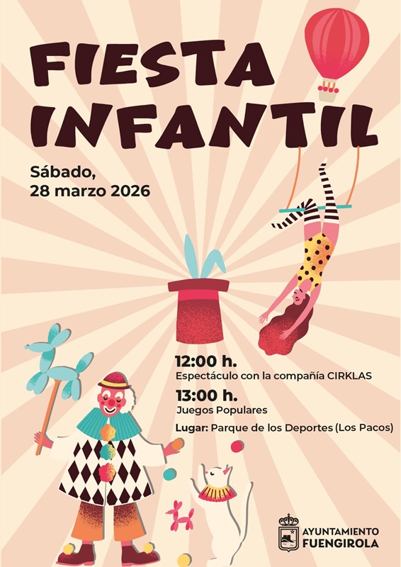 24/3/2026 – El parque de Los Deportes de Los Pacos será escenario este próximo sábado, 28 de marzo, a partir de las 12:00 horas de una fiesta infantil que contará con la actuación del grupo Cirklas y una jornada de juegos populares que comenzarán a las 13:00 horas. Así lo han dado a conocer hoy los concejales de Fiestas y Deportes, Isabel Moreno y Julio Rodríguez, junto a la teniente de alcalde de Los Boliches, Rosa Ana Bravo.