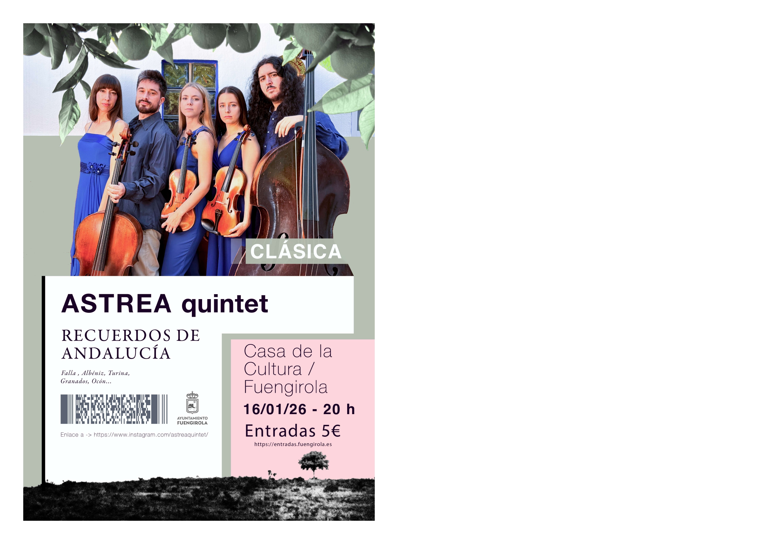 Astrea Quintet presenta el próximo 16 de enero en la Casa de la Cultura de Fuengirola “Recuerdos de Andalucía”, un viaje musical por la riqueza sonora del sur a través de la mirada de algunos de los más grandes compositores españoles.