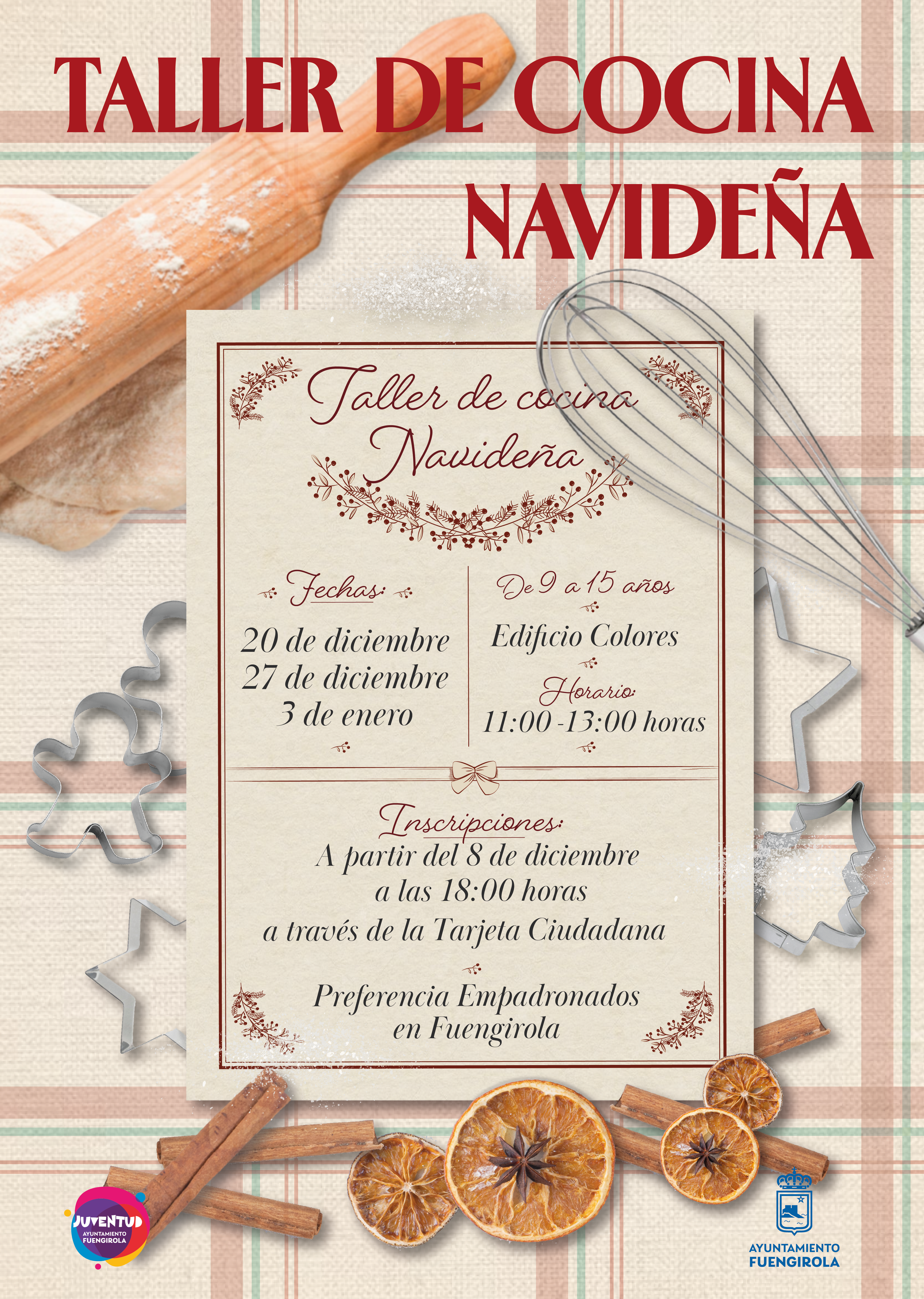 La Concejalía de Juventud organiza 3 Talleres de Cocina Navideña.