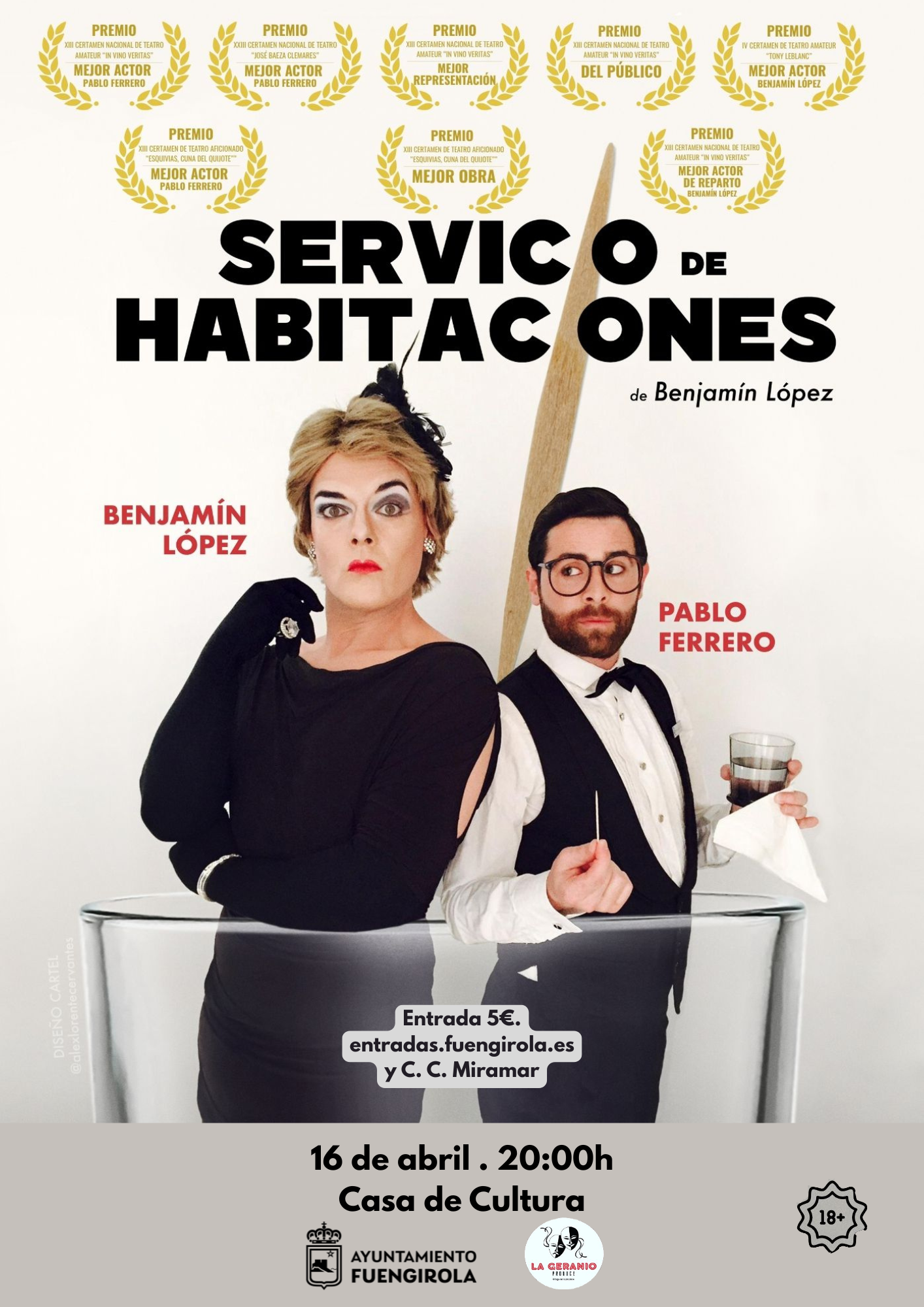 Entrada 5€. A la venta online: https://entradas.fuengirola.es , y presencialmente en el punto de información del C.C.Miramar y en taquilla antes de la función