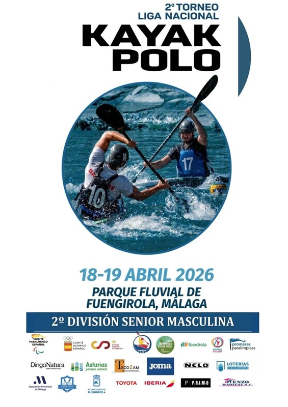 13/4/2026 – El Parque Fluvial de Fuengirola será escenario por primera vez de una competición oficial de Kayak Polo de ámbito nacional. Los próximos días 18 y 19 de abril se celebrará el II Torneo de la Liga Nacional de Kayak Polo, una cita deportiva que reunirá a nueve equipos de distintos puntos de la geografía española en una competición correspondiente a la Segunda División senior masculina.