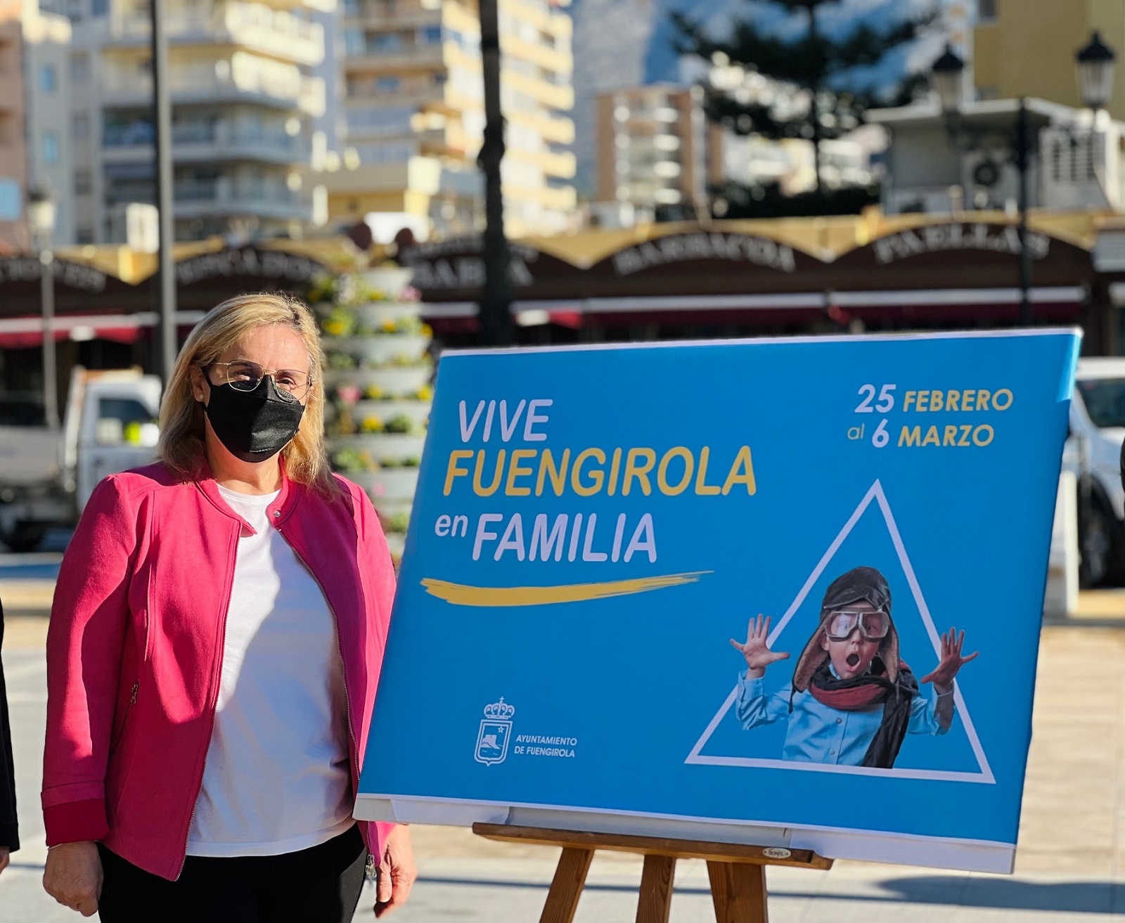 18/2/2022 – ‘Vive Fuengirola en Familia’ es la alternativa lúdica y deportiva, diseñada por el Ayuntamiento de la ciudad, para todos los públicos, coincidiendo con la Semana Blanca. El programa de esta séptima edición recoge hasta treinta actividades distintas dirigidas a niños, jóvenes y adultos que se desarrollarán del 25 de febrero al 6 de marzo en distintos puntos de la ciudad. La alcaldesa Ana Mula ha dado a conocer hoy en la plaza Pedro Cuevas, acompañada por varios concejales, esta iniciativa municipal que incluye sesiones de cuentacuentos, jornadas de puertas abiertas en el edificio Colores y en el Elola, la fiesta de Carnaval tanto para mayores como para pequeños, conciertos de bandas locales, animación infantil en plazas y parques y master class de bailes urbanos y de repostería, entre otras.